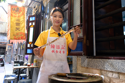 Chilled, crispy fish skin is paired with a time-honored secret-recipe soy sauce, topped with peanuts, shredded scallions, and ginger… This authentic snack, "Fish Skin Salad", can be found at Chen Tian Ji, tucked away in the alleys of Guangzhou’s Xiguan area. Founded in 1979 by Chen Chengtian from Shunde, Foshan, Chen Tian Ji is the designated protection unit for the the “Xiguan Fish Skin Salad Making Technique,” recognized as part of the eighth batch of district-level intangible cultural heritage projects in Liwan District.
