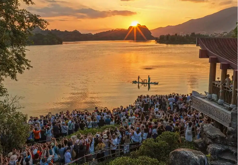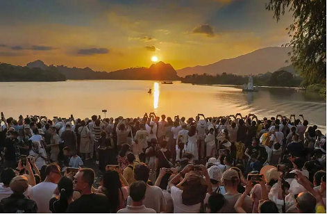 Lingnan: Beauty Beyond Borders | The 2025 "Seven Star Crags Only — Buddha Holding the Sun" Autumn Equinox Viewing Season in Zhaoqing’s Xinghu Lakeruns from September 13 to 23. As a unique astronomical and geographical wonder of Xinghu Lake, the highlight of this season—the "Buddha Holding the Sun"—will reach its peak on September 16, when the setting sun aligns perfectly into the mouth of a natural rock formation resembling a reclining Buddha, creating the year’s most iconic celestial scene. It is expected to attract domestic and international tourists, astronomy enthusiasts, and photography lovers to gather and capture this moment.