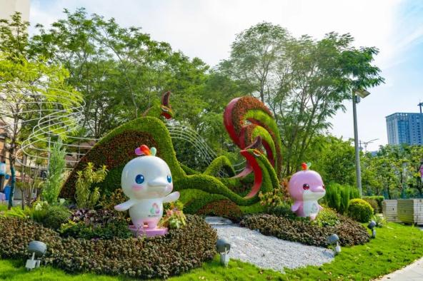 As the 15th National Games draw near, the mascots Xiyangyang and Lerongrong have appeared on the streets of Nansha, Guangzhou. Their sculptures and promotional installations are drawing crowds of residents and visitors to stop and take photos.