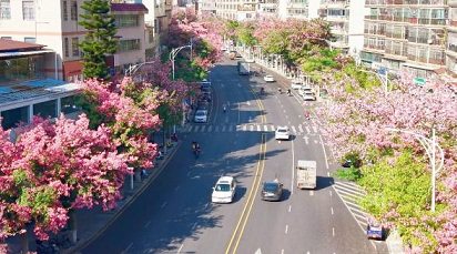 Since the launch of the “Hundreds, Thousands, and Tens of Thousands Project,” Wujing District in Shaoguan has built a richly layered ecological landscape. In the autumn and winter seasons, streets across the district are beautifully adorned with pink floss-silk trees. Shaozhou Park, Furong Mountain, Muxi Lake, and Shibei Lake shine like four radiant jewels, together composing a magnificent picture of an urban forest ecosystem.
