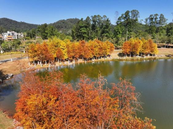 Lingnan: Beauty Beyond Borders| This winter, Dongguan is quietly transforming into a warm, Maillard-style oil painting. Across the city, bald cypress trees have slipped into their winter-only reds, mirrored by rippling water and set alongside historic architecture and the modern CBD skyline—scenes that are quickly taking over social media feeds. #SplendidLingnan