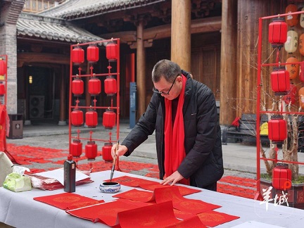 1月16日,贵州省铜仁博物馆古朴的厅堂内,毛笔掠过红纸的沙沙声,细微绵长。由东莞博物馆联盟与铜仁博物馆携手策划的2026年双城送福活动启幕。