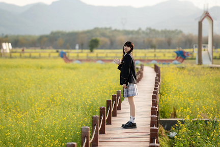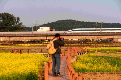 Lingnan: Beauty Beyond Borders | In Shuikou Village, Chongyang Town, Wujiang District of Shaoguan, thousands of mu of rapeseed flower fields have simultaneously entered their peak blooming season. Layers of golden blossoms blanket the countryside like a vast golden carpet woven by nature. The stunning landscape has become a popular winter outing destination for residents and visitors alike, while also sparking a wave of “healing-style”photo check-ins across social media. #SplendidLingnan