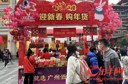 The First Tower of Lingnan of the Yuexiu District Flower Market in Guangzhou was open to visitors on Jan 15. Although the "real tower" is a kilometer away, the "duplicate one" attracted many to record their memories on camera. There are still four days to go before the official opening of the Yuexiu District Flower Market. But the street has already been decorated with red lanterns, red signs, red stalls, and red First Tower of Lingnan, bringing about an all-out "Cantonese Spring Festival" flavor.