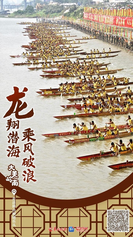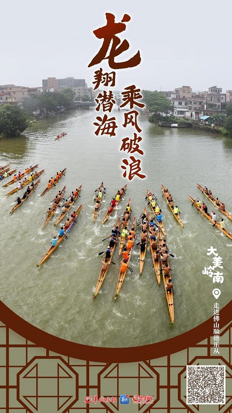 Every assembly of Lecong dragon boats is a grand event. People gather on the riverbanks and look for the best observation points to see the floating boats. The river suddenly becomes lively as the crowd shouts and cheers for the boatmen. Amid the rhythmic sound of drums and the blowing of the horn, the dragon boats glide like arrows over the water, passing through the river outside the Chen Clan Academy.The gray tiles of the ancestral hall of the academy have witnessed a century of wind and rain in Lecong, while the statue on the roof still watches the dragon boat races just like in the past.