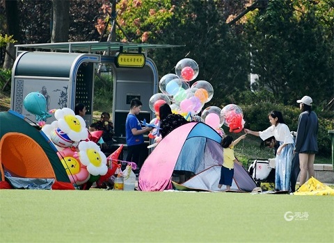 蒹葭白鹭,秋水长空。假日的第六天,在胶州少海湿地公园,观海新闻记者看到,很多市民驱车赶到这里,从车上卸下帐篷,搭建在公园孔子塑像下面的人造草坪上,或湖上泛舟,或公园骑车,又或围坐在帐篷附近聊天、嬉戏,让温柔的秋风从脸上拂过,静静地感受自然之美。(青岛日报观海新闻记者 王雷 摄影报道)