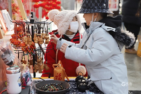 作为胶州市黄河大集的重要组成部分之一,近日,兼有美食年货与非遗文化“味”的文化年货市集在大沽河度假区孔子六艺园内热闹开市。这里不仅有远近闻名的胶州非遗工艺品黑陶、剪纸等,还有胶州大白菜、洋河花生、柏兰香油、阿塞边疆红酒等,更有泥塑、糖瓜、胶东饽饽等唤起大家儿时记忆的特产好物。