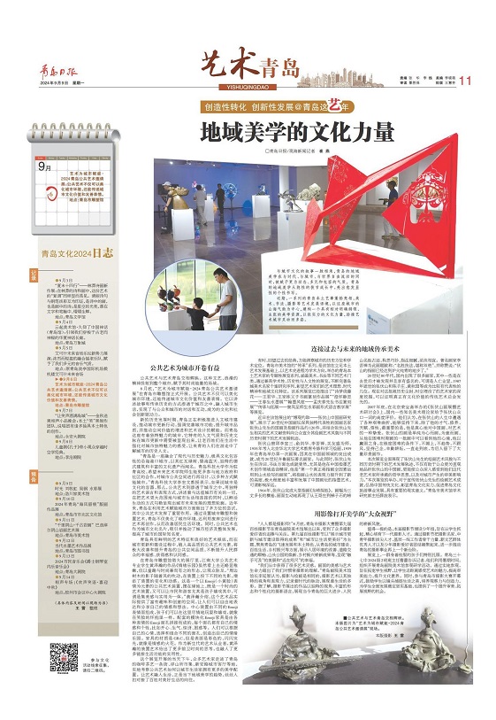 8月底,“艺术为城市赋能·2024青岛公共艺术邀请展”在青岛市雕塑馆正式开展。公共艺术不仅可以美化城市环境,还能传递城市文化价值和友善表情。它以讲述故事和传承历史的方式渗透于城市之中,融入城市生活,实现了与公众和城市的对话和互动,成为的文化和社会创新驱动力。