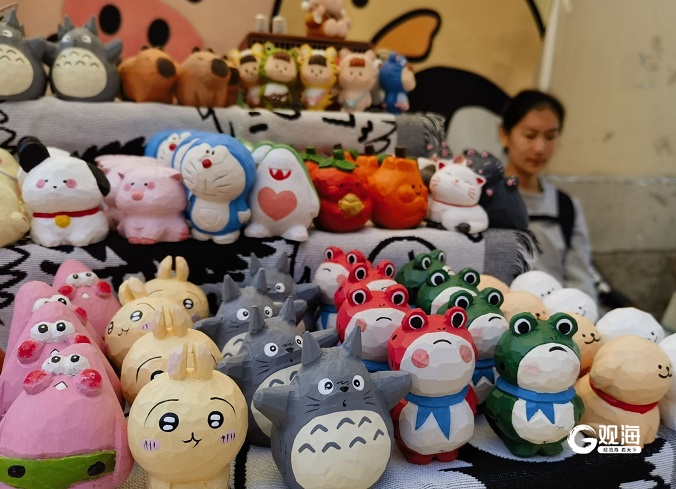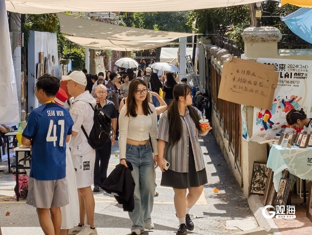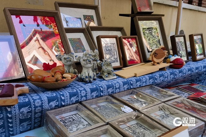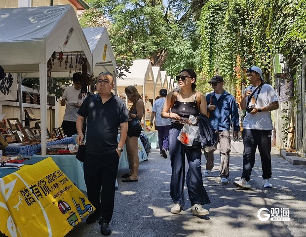 16日上午,黄县路变身艺术市集。艺术展览、艺术创作、艺术衍生品、非遗手造……超多“吸睛”作品亮相。游客、市民纷纷融入其中,感受艺术手作的魅力。(青岛日报/观看新闻记者 王雷 摄影报道)