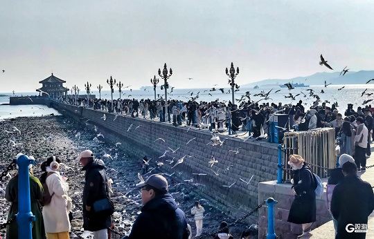 作为青岛的标志性景点之一,冬季的栈桥聚集着大量的海鸥。这里视野开阔,可将成群结队的海鸥与城市风光尽收眼底。 随着寒假的来临,去栈桥喂海鸥的市民游客纷至沓来。人鸥亲密互动,呈现出一道独特的冬日风景。(青岛日报/观海新闻记者 王雷 摄影报道)