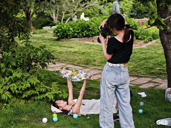端午期间,青岛百花苑热闹非凡。园内盛开的花朵与葱郁绿植相互映衬,吸引众多新人来此拍摄婚纱照。他们在花丛中、雕塑前定格甜蜜瞬间,让爱情与美景永恒相伴。还有孩子们天真烂漫的笑容与自然景观相融合,家长们希望借此记录孩子成长的美好时刻。游客们也纷纷拍照留念,用镜头记录下百花苑的湖光山色与节日氛围。青岛百花苑以其独特的自然魅力吸引着市民和游客,尽显城市的浪漫与活力。(青岛日报社/观海新闻记者 徐稚媚)
