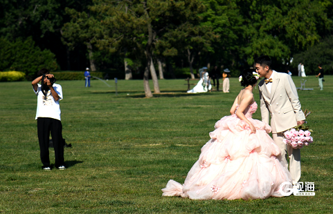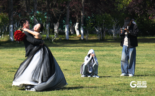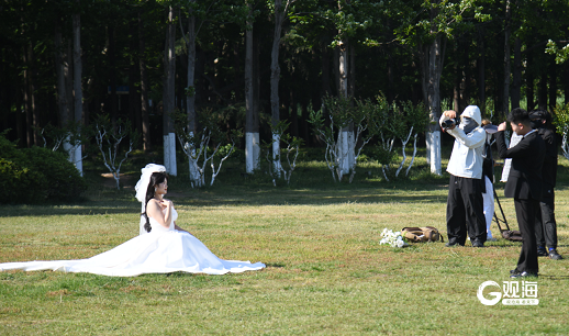 美丽的汇泉广场草坪,吸引着众多新人前来拍摄婚纱照。3日下午,观海新闻记者在现场看到,多对新人身着华丽的婚纱礼服,在摄影师的指导下,摆着各种甜蜜的姿势。新人们纷纷表示,汇泉广场独特的自然风光与浪漫氛围,是他们选择此地拍摄的主要原因。(青岛日报/观海新闻记者 王雷 文/图)