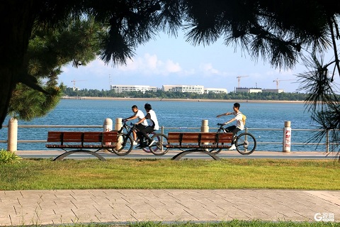岸边的节奏是另一种模样。骑行道上,车轮碾过风的轨迹,两侧的绿意扑面而来,混着海风的咸湿;散步的人踩着树荫踱步,看远处的艇影与近处的树影交叠,任时间在惬意里慢慢流淌。唐岛湾的周末,一半是浪花里的心跳,一半是树荫下的惬意。在这里,盛夏的快乐从不设限——可以是乘风破浪的畅快,也能是岁月静好的安然。(青岛日报/观海新闻记者 梁超 文/图)