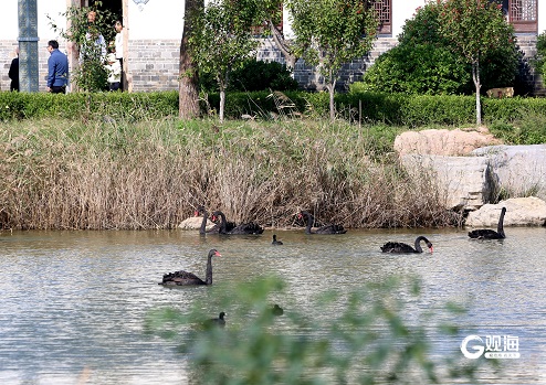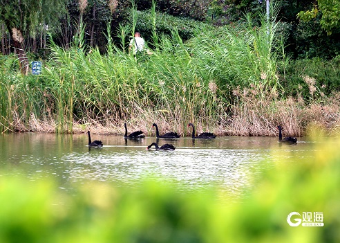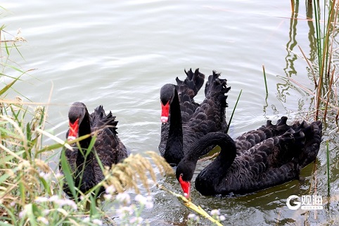 秋阳漫洒唐岛湾,芦苇轻摇间,成群黑天鹅划破澄澈水面。它们舒展羽翼,或低头啄食水草,或结伴嬉戏游弋,红喙在碧波中漾开圈圈涟漪。岸边游客放慢脚步,与黑天鹅友好互动,湿地的静谧与生灵的悠然相融,青岛的秋日诗意,正藏在这人与自然的温柔相拥里。(青岛日报/观海新闻记者 梁超 文/图)