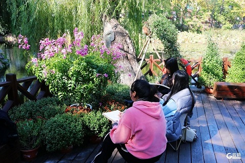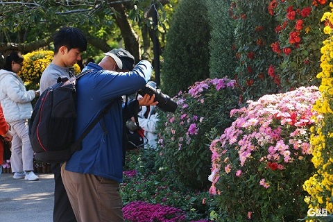 人们携亲带友穿梭花丛,相机手机对准盛放的菊枝,定格秋日倩影;几位写生爱好者支起画板,笔尖流转间,将菊韵与秋光一同定格在纸上。漫步其中,花香萦绕,笑语阵阵,这场持续的菊花展,不仅扮靓了城市秋景,更成为青岛人感受秋日诗意的绝佳去处。(青岛日报/观海新闻记者 梁超 文/图)