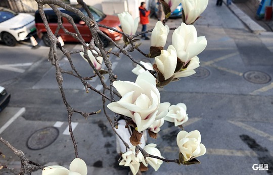 眼下,市南区金口一路的“网红”玉兰迎来一年中最美的时刻。立于花下抬首,洁白花瓣映衬蓝天,如云似雪;极目远眺,碧海万顷与小鱼山的青翠山影尽收眼底,一幅山海花相映的春日画卷徐徐展开。玉兰花期短暂,这份限定美景正迎来最佳观赏期,吸引众多市民游客慕名打卡,定格浪漫瞬间。