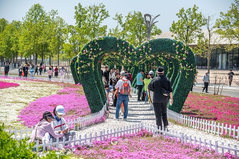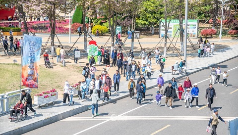 “五一”假期,青岛世界园艺博览园人头攒动,游园市民络绎不绝。尤其在儿童游乐区,市民排队体验摩天轮、彩虹滑道、旋转飞椅等游乐设施。眼下,世博园内的芝樱花花开正盛,市民纷纷来到芝樱花海拍照赏花。另外,还有市民在园区的树荫下搭起帐篷和天幕,约上三五好友在世博园的美景中享用美食,欢度假期。杨志文 摄影报道