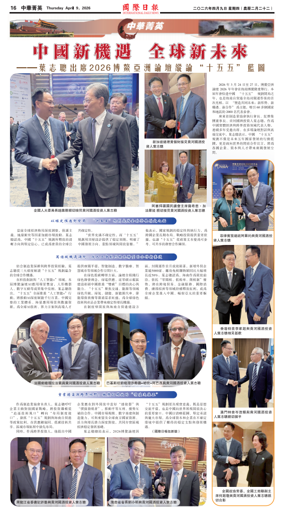 叶志聪总结表示,2026 博鳌论坛因 “十五五” 规划更具现实意义,既是思想交流平台,也是中国向世界展现开放决心的重要窗口。中国以清晰蓝图、坚定承诺与庞大市场,为全球资本和企业在不确定环境中提供了难得的稳定支点与发展机遇。(国际日报 伍新雄)