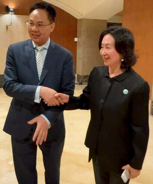 全国政协常委、全国工商联副主席何超琼与贡河国酒投资人叶志聪亲切合影