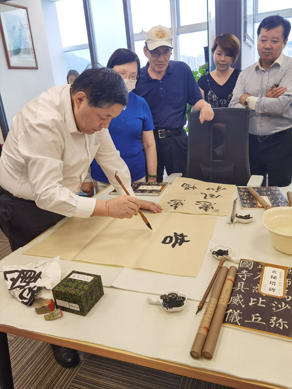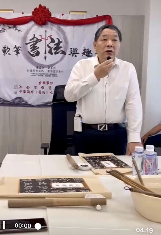 江西省旅港同乡会会长、中华两岸(香港)文创观光协会荣誉会长陈成炉先生致开幕词:书法是民族文化的瑰宝与象征,承载着传统文化和民族精神;书法能够培养人的道德素质、审美能力,具有实用和审美两方面的价值……